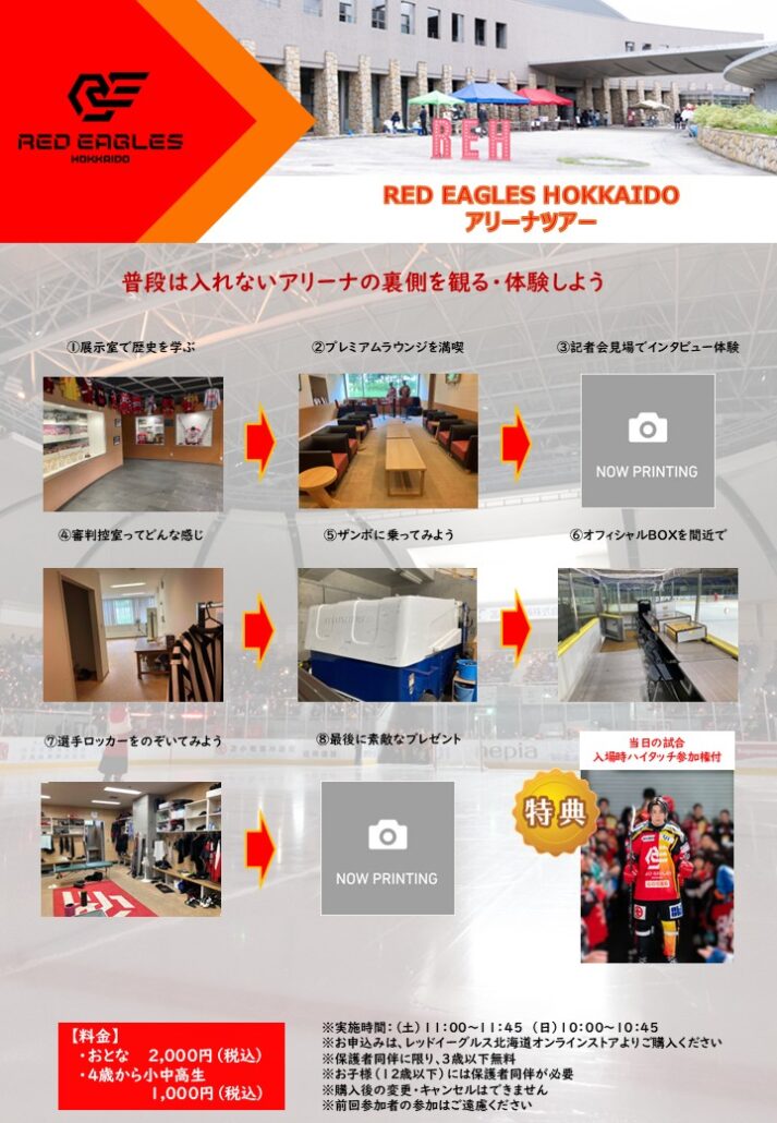 10/18.19に開催されるアジアリーグアイスホッケー2025-2026「The Pink Days レッドイーグル北海道 VS HLアニャン」戦に試合当日におきまして、レッドイーグルス北海道nepiaアイスアリーナツアーを開催いたします。