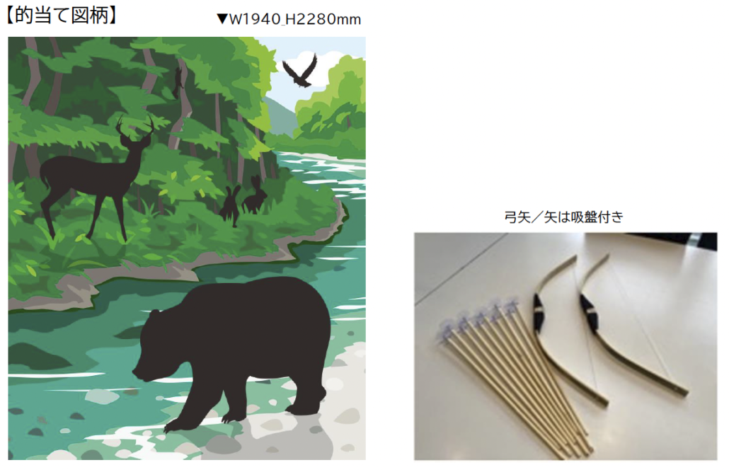 ブースでは、アイヌ工芸品の展示や、アイヌ民族の狩猟体験(アㇰシノッ)コーナー、ウポポイPRコーナーを設置。