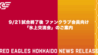 ニュース 9/20【新商品情報④】「A4クリアファイル」「A2ポスター」新発売 9月20日に開催される「明治安田 presents レッドイーグルス北海道 vs 東北フリーブレイズ」試合会場におきまして、新商品「A4クリアファイル」(価格600円・税込)「A2ポスター」を発売することとなりましたので、お知らせいたしま... 2025.09.11 ニュース